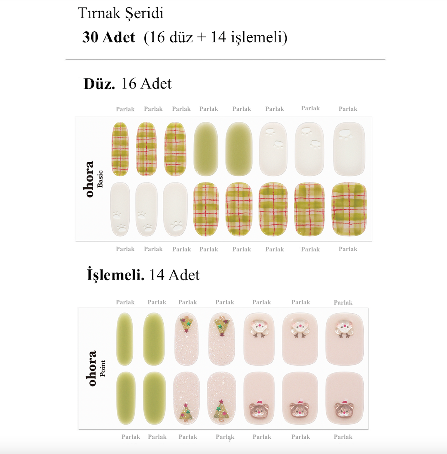 Her Ohora paketi, farklı tırnak boyutlarına uygun 30 adet jel şerit içerir. Bu sayede bir paketle iki kez kullanım mümkün!