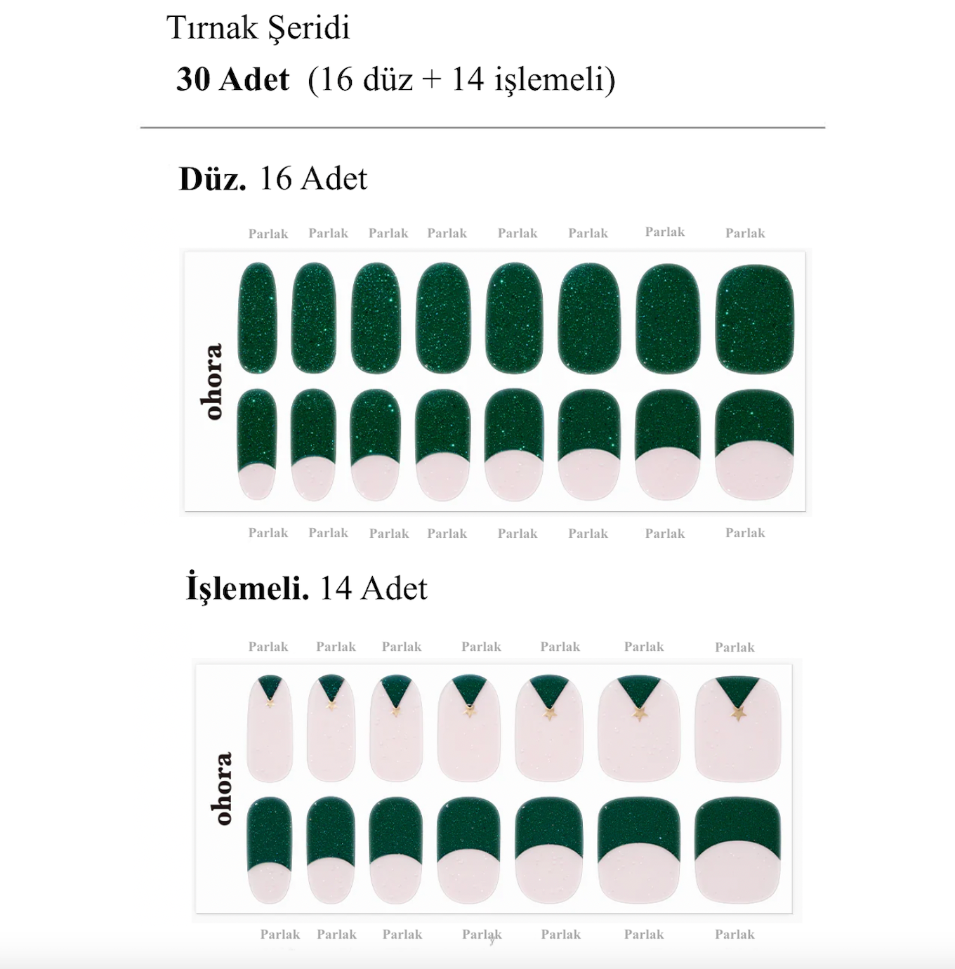 - 30 Adet Jel Tırnak Şeridi: Her tırnak yapısına uyum sağlaması için farklı boyutlarda hazırlanmıştır.
