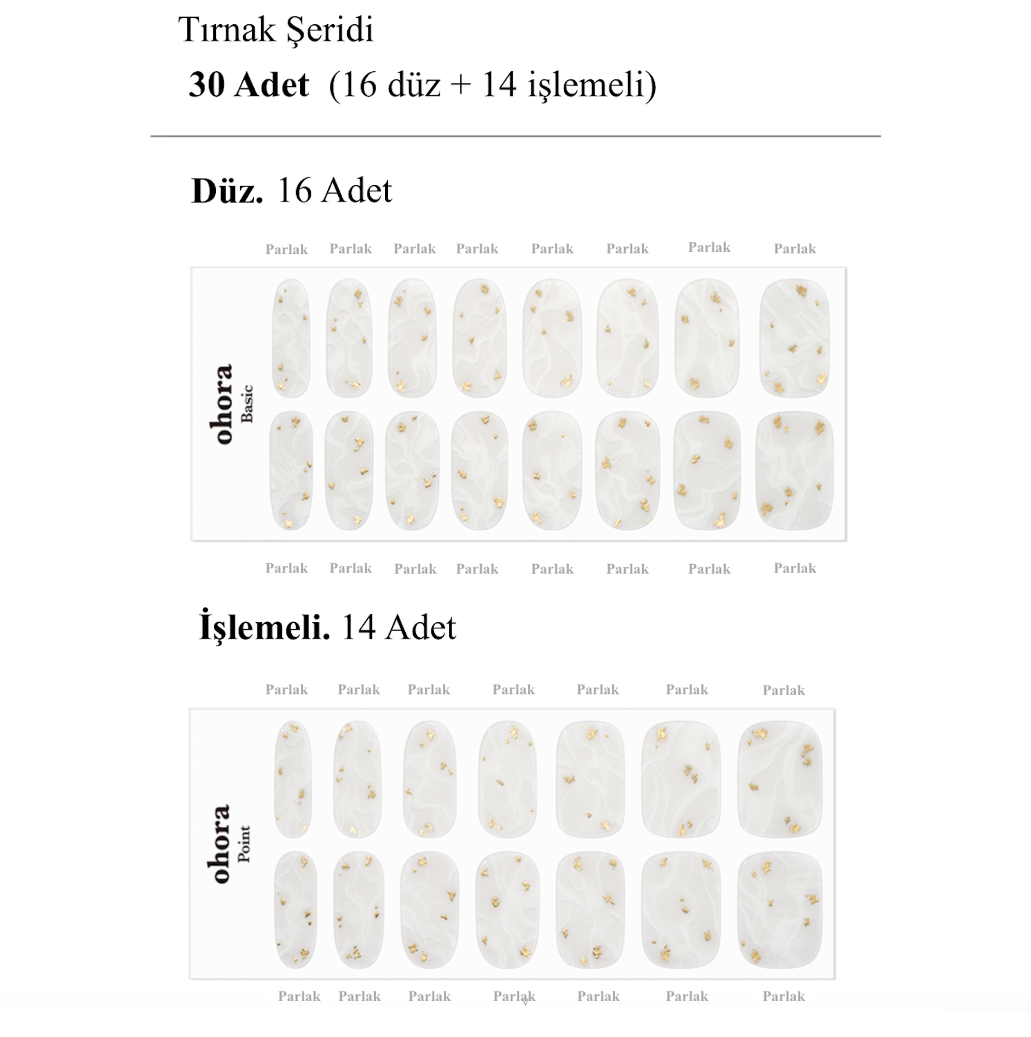 Her Ohora paketi, farklı tırnak boyutlarına uygun 30 adet jel şerit içerir. Bu sayede bir paketle iki kez kullanım mümkün!