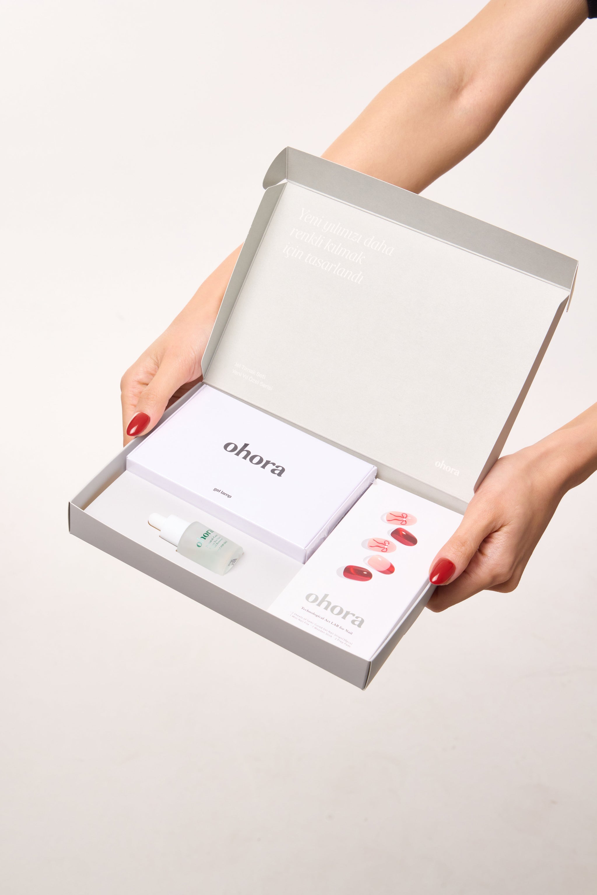 Ohora'nın Yılbaşı Özel Jel Tırnak Seti ile kendinizi veya sevdiklerinizi şımartın. Kusursuz, salon kalitesinde bir jel tırnak görünümü için ihtiyacınız olan temel parçaları ve tırnak sağlığınızı düşünen bakım ürününü tek bir kutuda sunuyor.