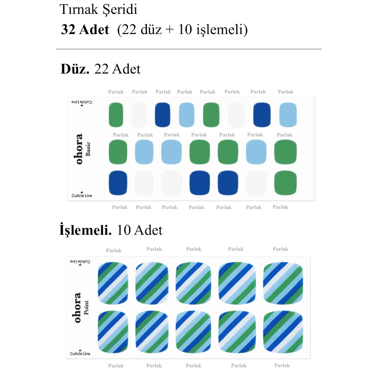 Her Ohora paketi, farklı tırnak boyutlarına uygun 30 adet jel şerit içerir. Bu sayede bir paketle iki kez kullanım mümkün!