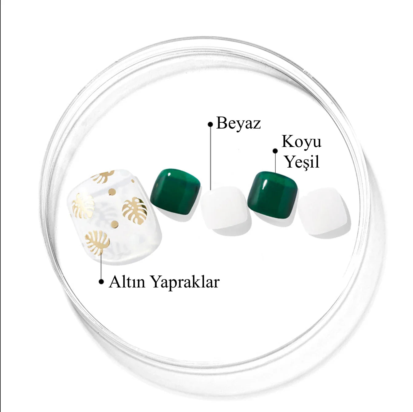 - 32 adet jel tırnak şeridi (15 farklı boyda, tam uyum için)
