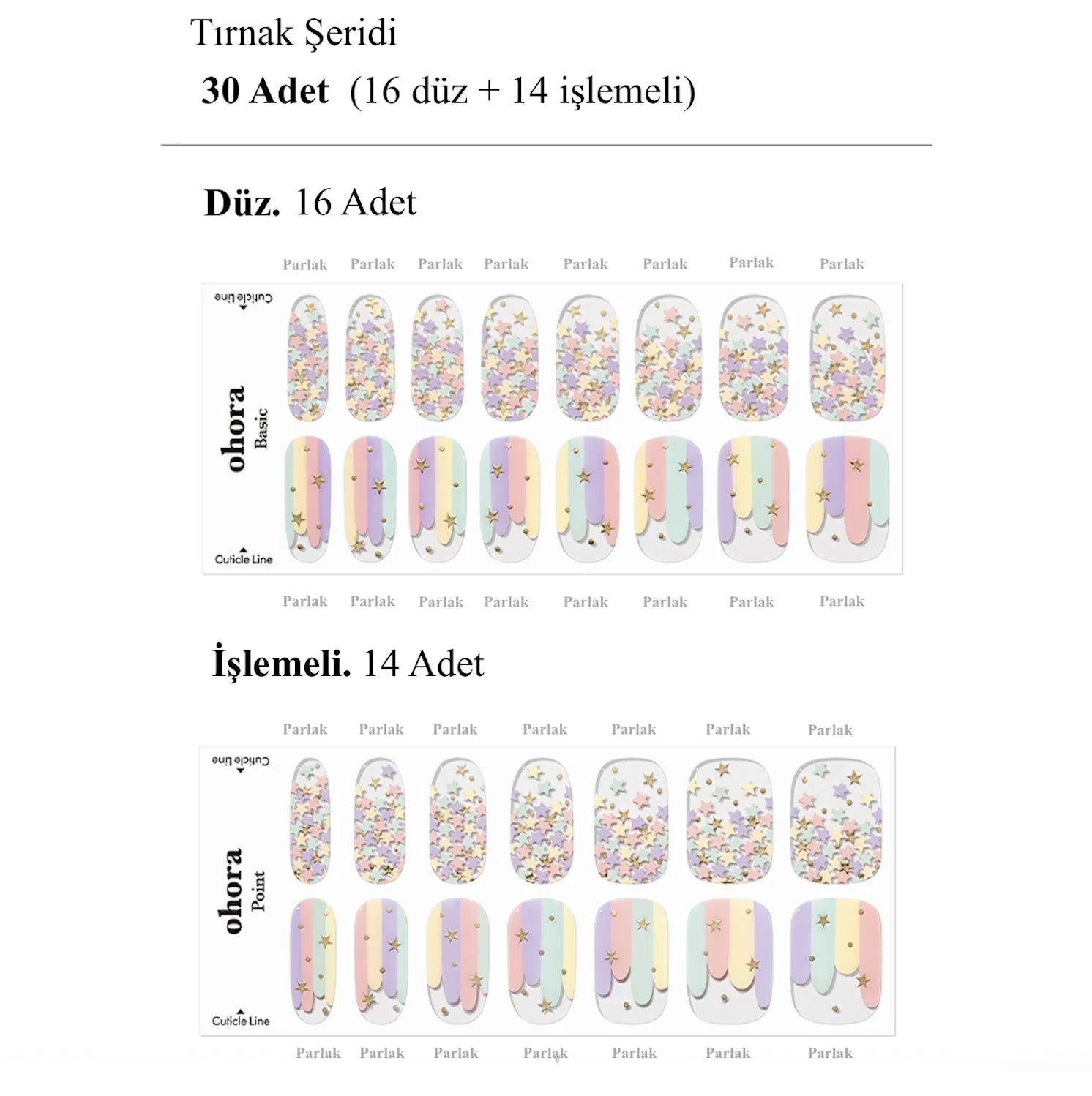 Her Ohora paketi, farklı tırnak boyutlarına uygun 30 adet jel şerit içerir. Bu sayede bir paketle iki kez kullanım mümkün!