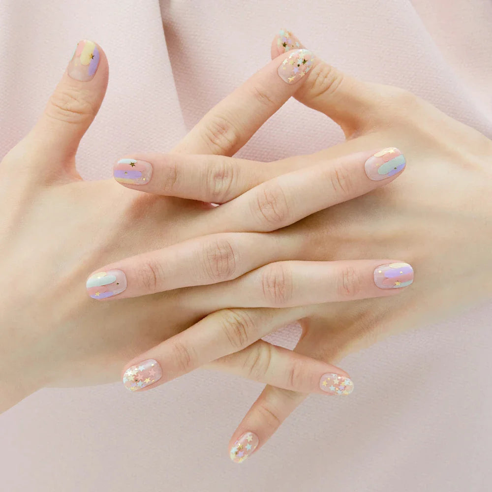 - Tırnak kökünle arasında hafif bir boşluk bırakarak şeridi tırnağına iyice yapıştır. Önemli: Kenarlara iyice bastırarak şeritlerin takılmasını önleyebilir, daha uzun süre kalıcı olmasını sağlayabilirsin.