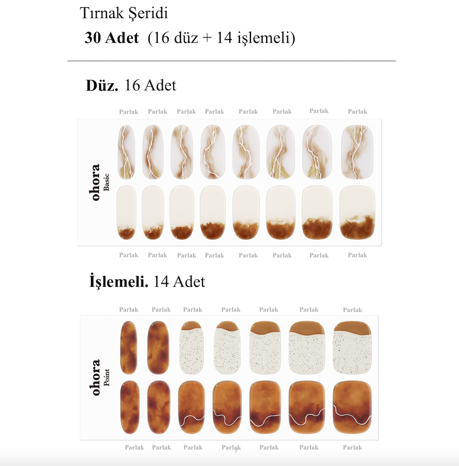 Her Ohora paketi, farklı tırnak boyutlarına uygun 30 adet jel şerit içerir. Bu sayede bir paketle iki kez kullanım mümkün!