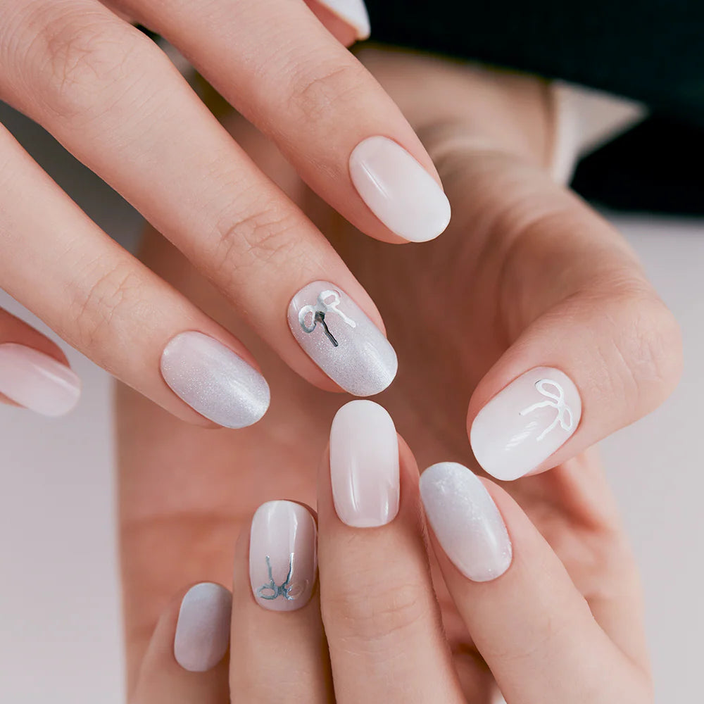 Beyaz zemin üzerine eklenen gümüş sim geçişleri ve zarif gümüş fiyonk çizimlerinden oluşan minimalist bir jel tırnak seti olan N Rizz Sparkle, modern ve temiz bir görünüm arayanlar için tasarlananmıştır. Parıltılı dokusuyla ellerinize bakımlı bir hava katar.