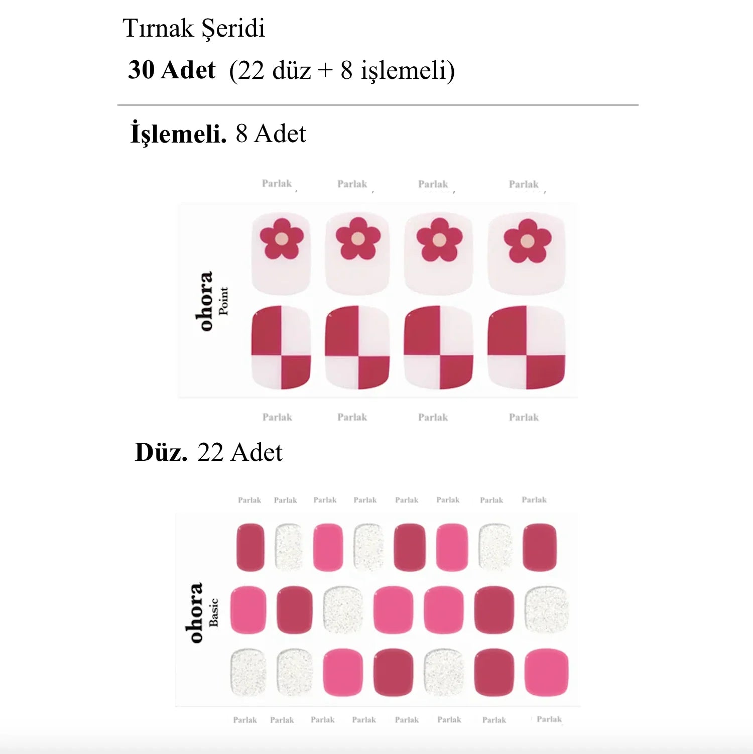 Her Ohora paketi, farklı tırnak boyutlarına uygun 30 adet jel şerit içerir. Bu sayede bir paketle iki kez kullanım mümkün!