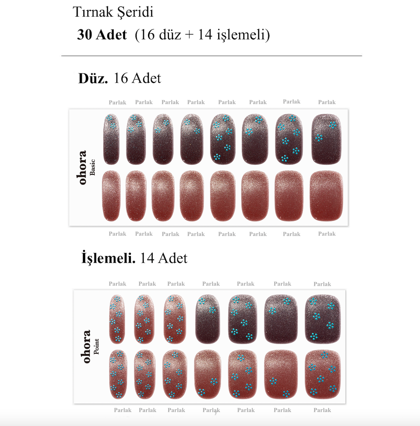 Her Ohora paketi, farklı tırnak boyutlarına uygun 30 adet jel şerit içerir. Bu sayede bir paketle iki kez kullanım mümkün!